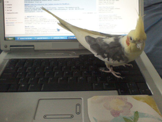 Tibby: Tweeeeeeeet! ::Flies around the room and lands on the keyboard::